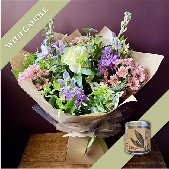 Edith is our classic pastel mix for Mother’s Day, combining apricot daisies, lilac scented stocks and hints of white and green. This hand tied bouquet is presented in our signature wrap and delivered in a water bubble.