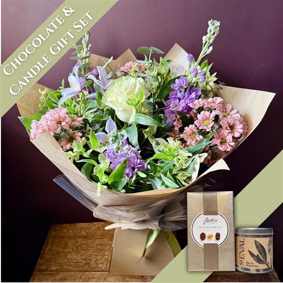 Delivered with a St Eval scented candle and a delicious selection of Butler's chocolates.