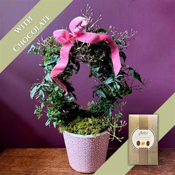 A sweetly scented Jasmine plant in a decorative pot, finished with moss and a ribbon bow. After flowers, this incredible plant can be planted in the garden to give years of endless pleasure and summer fragrance.