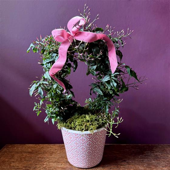 A sweetly scented Jasmine plant in a decorative pot, finished with moss and a ribbon bow. After flowers, this incredible plant can be planted in the garden to give years of endless pleasure and summer fragrance.